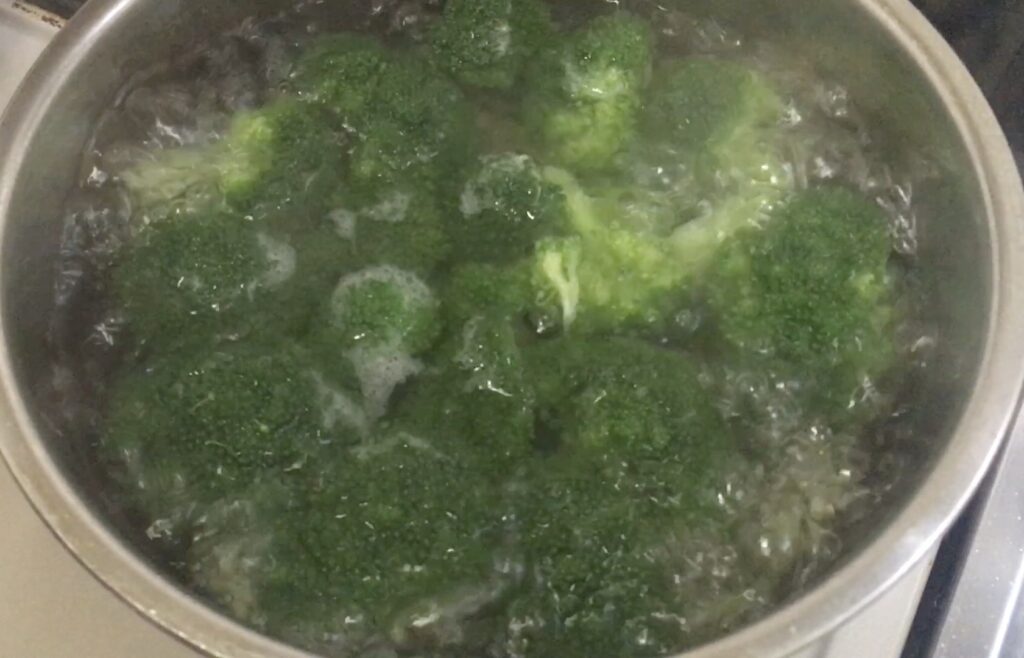 ①ブロッコリーは小房に分けて茹で、流水で冷まして水切りしておく。