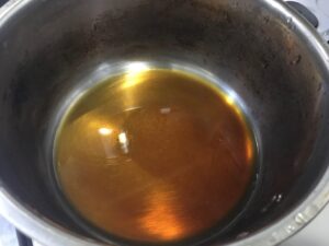 ①水・砂糖・しょうゆを入れた鍋を火にかける。