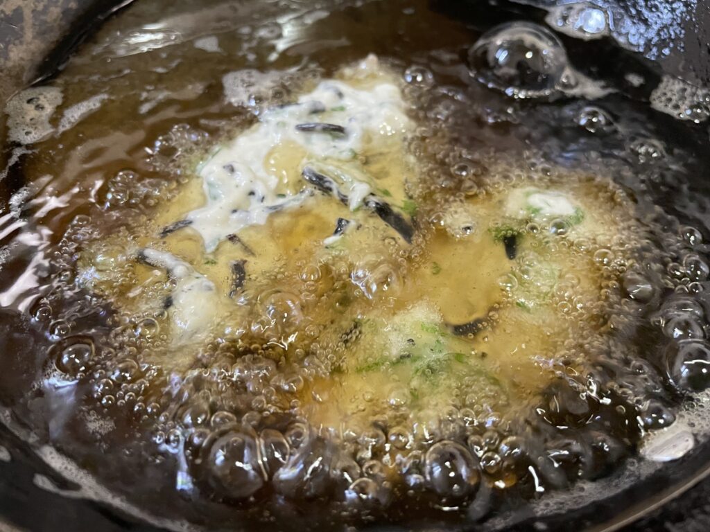以前、青じそ&あかもくのかわり揚げのレシピは公開していますが、今回は青じそ&ひじきのかわり揚げです。