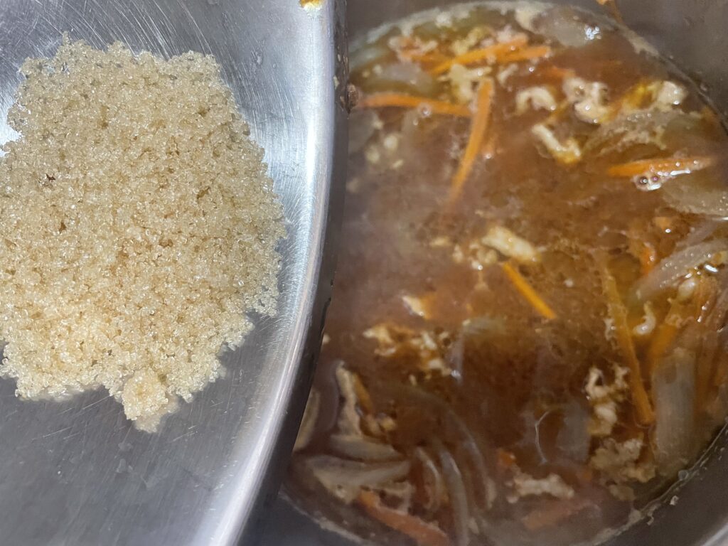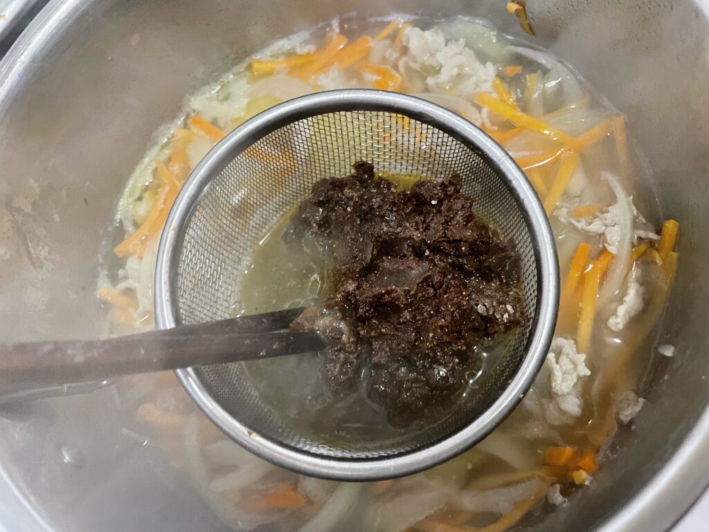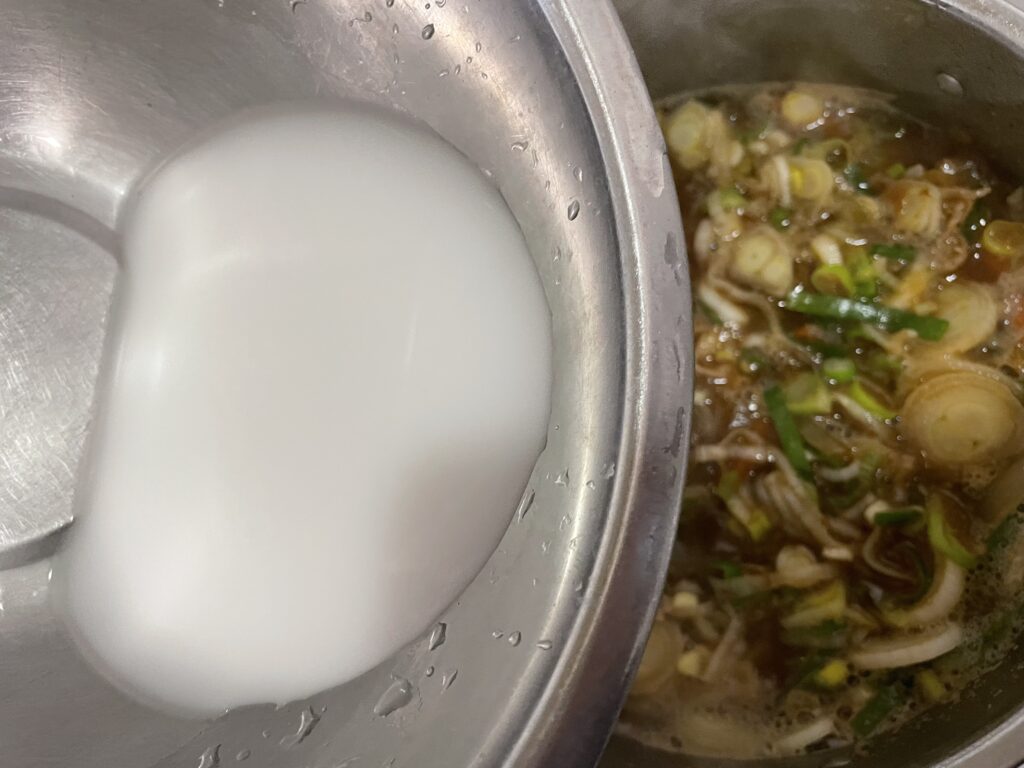 ④[3]に味噌・砂糖を溶かし入れ、ねぎを加える。