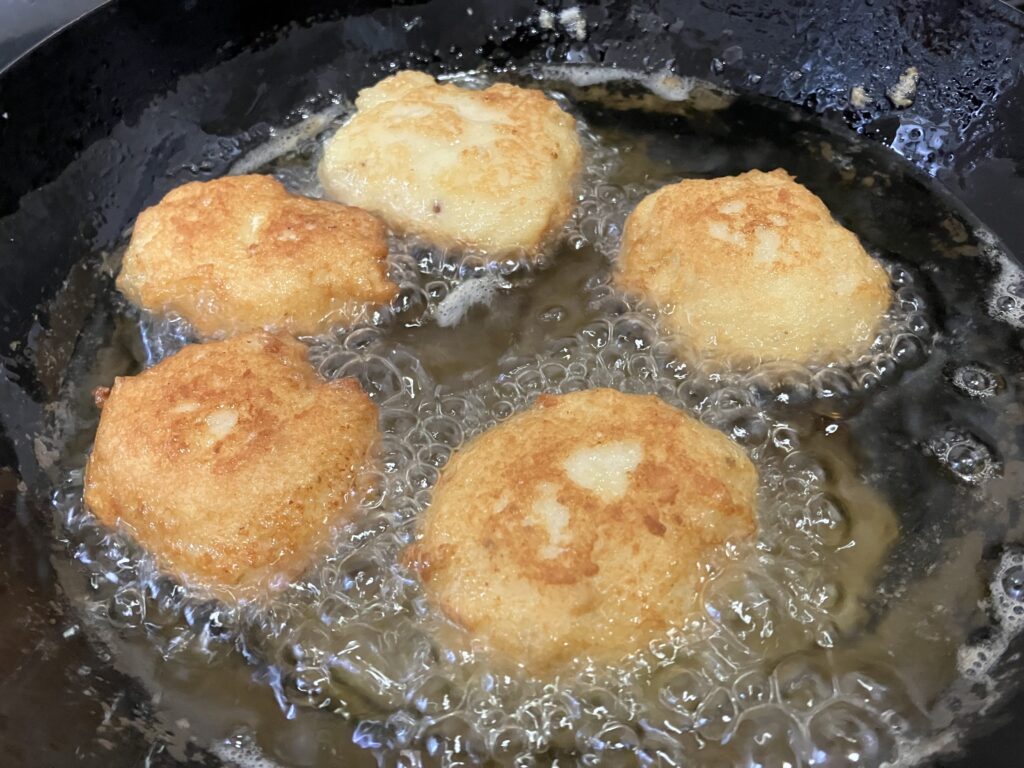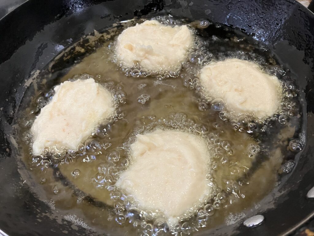 ④スプーンを2本使って成形(適当で大丈夫)し、油で揚げたら、できあがり♪