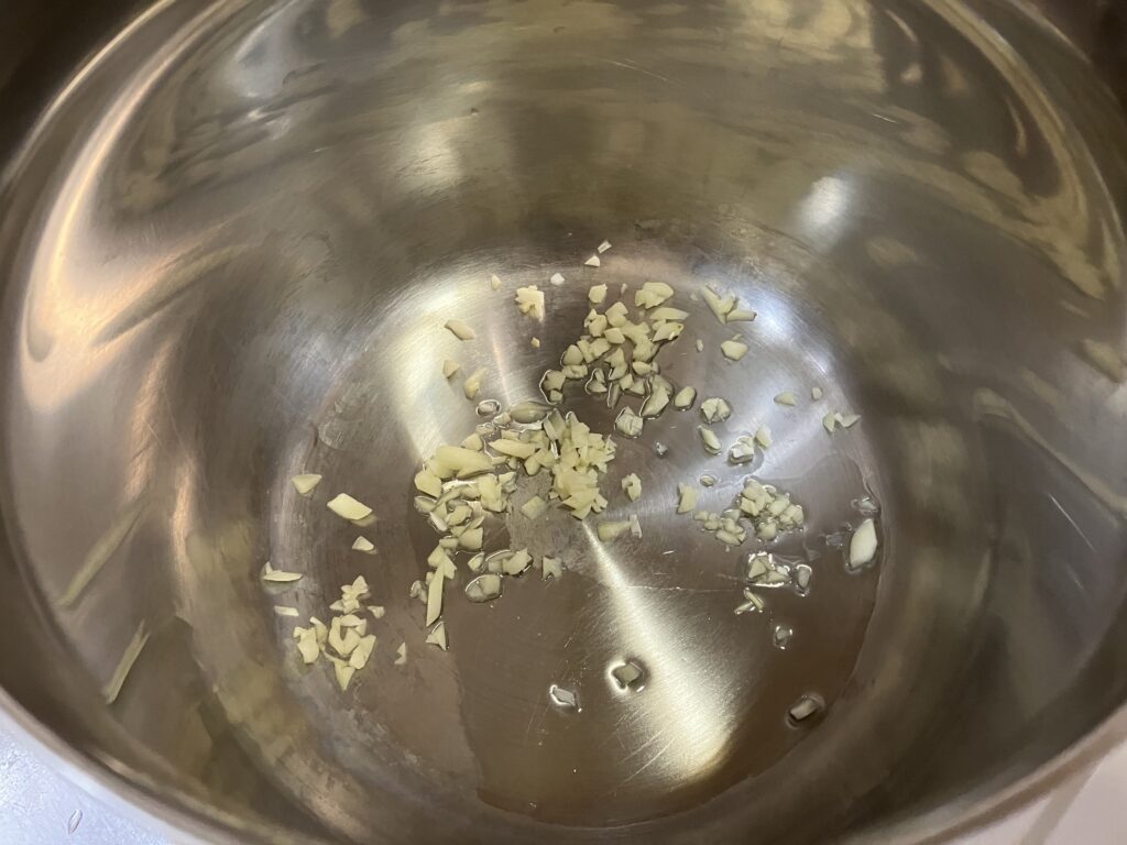 ① にんにくはみじん切り、にんじん・玉ねぎ・白菜やチンゲン菜、小松菜などは細切り、ニラは2cmくらい、ねぎは小口切り、豆腐はさいの目切り、豚肉は食べやすい大きさに切っておく。