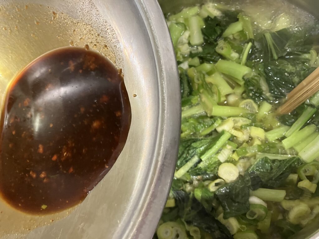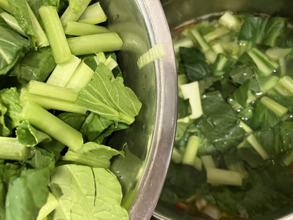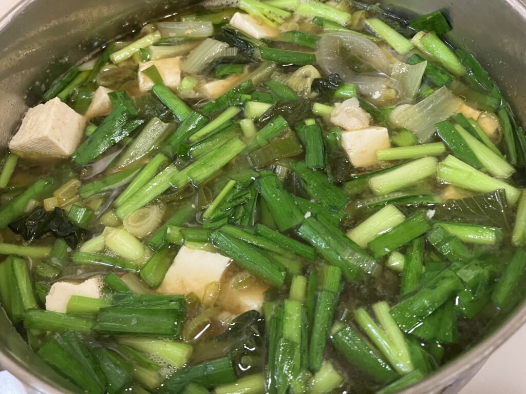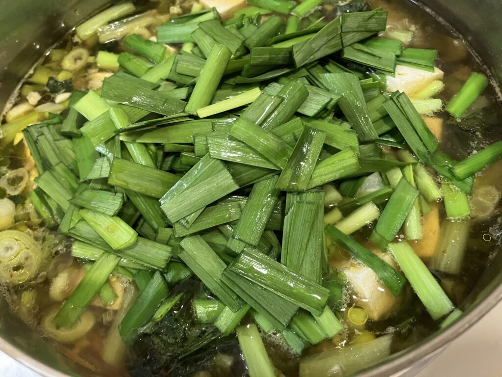 ④最後ににらを加えてひと煮立ちしたら、できあがり♪